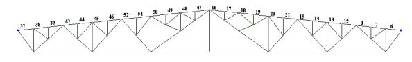 Рис. 24.1. Схема фермы покрытия с номерами элементов верхнего пояса |