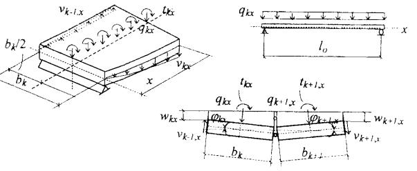 элемента на элемент верт кальные перерезывающие силы vkx в сечении х каждого k-го шва (рис. 8.1). Элементы настила представим в виде балочных плит шириной b и длиной l. Плиты свободно оперты торцами на недеформируемые опоры.