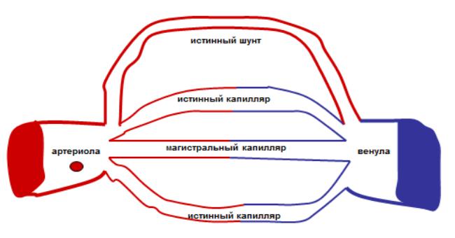 Магистральный капилляр становится функциональным шунтом при большой линейной скорости кровотока.