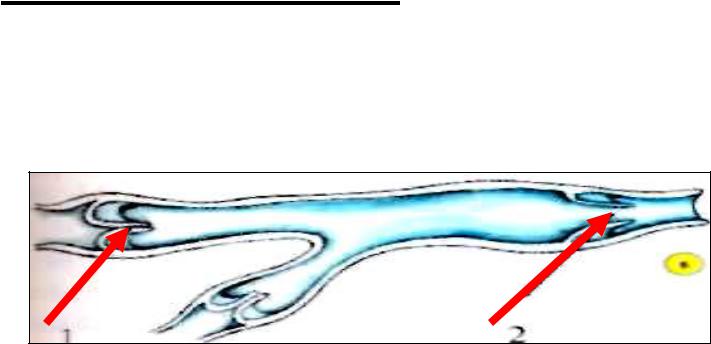 Клапаны вены: 1 – закрыты, 2 - открыты