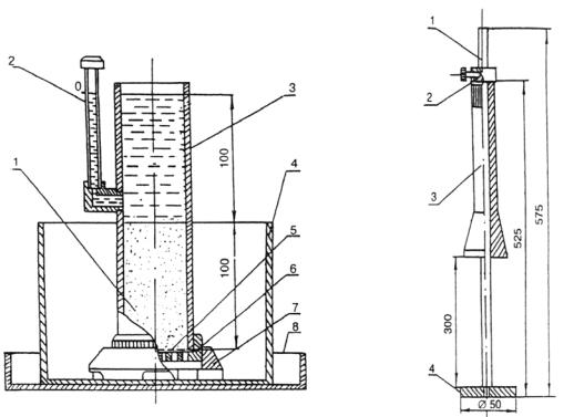 уровня воды более 10Амин допускается проводить испытание при градиенте напора, равном 2. В этом случае трубку с подставкой извлекают из стакана и ставят непосредственно на поддон.