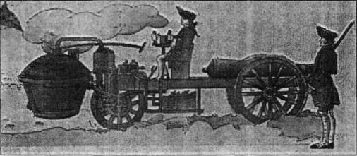 Pour sa traction, la vapeur est admise dans un cylinder; grace à des galets son mouvement alternative est transformé en mouvement circulaire (le système qui sera adopté plus tard pour les locomotives à vapeur). La chaudière est en cuivre et son rendement est très faible car la plus grande partie de ľénergie fournie par le feu se disperse dans ľatmosphère. Ľautonomie du véhicule n’est que d’environ douze minutes; il faut alors procéder au rechargement en eau de la chaudière, ce que ne peut se faire qu’à ľarrêt et dans des conditions complexes; ensuite il faudra attendre un quart d’heure pour que la pression de la vapeur redevienne suffisante.
