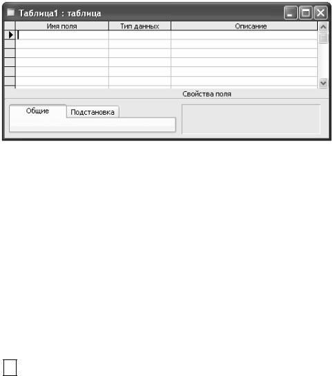 После того как вы выполните п. 3, на экране появится окно конструктора таблиц (см. рис. 10). Оно состоит из двух частей: верхней, в которой указываются названия и типы полей (данных), и нижней, в которой определяются свойства каждого поля. Раздел Свойства поля (Field Properties) состоит в свою очередь из двух вкладок: Общие (General) и Подстановка (Lookup). Переход от верхней части окна конструктора к нижней и наоборот осуществляется с помощью клавиши [F6] или мыши.