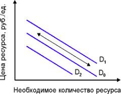 Изменение рыночной цены этого ресурса повлечет за собой изменение количества потребления данного ресурса (это отражено на рис. 8.1 движением "вдоль" кривой спроса D0). Динамика экономической ситуации также может повлиять на изменение спроса на ресурсы. На рис. 8.1 это показано перемещением кривой спроса от D0 к D1 или от D0 к D2.