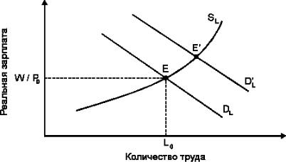 Средняя реальная заработная плата определяется в точке пересечения кривых спроса и предложения, точка Е на рис. 8.7.