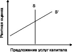 ется совершенно неэластичным. Это отражено кривой предложения S. Если некоторые активы не являются узкоспециализированными и могут в краткосрочном периоде перемещаться из одной отрасли в другую, это будет означать возможность появления в отрасли нового капитала вслед за ростом рентной оценки, т.е. кривая предложения этих активов в краткосрочном периоде будет возрастающей – S'.