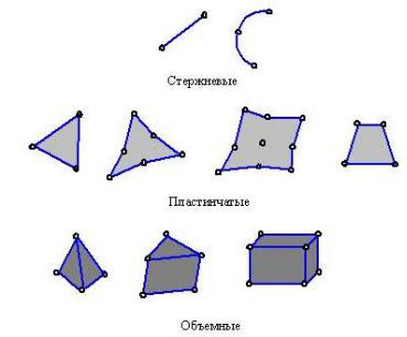 Рис. 4.1. Типы конечных элементов