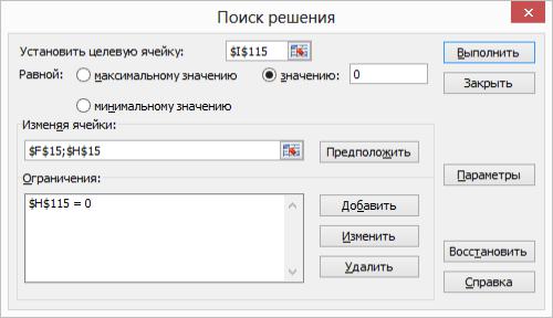 Поскольку на конце жесткая заделка, то V101 = 0 и φ101 = 0. Эти значения и будут целевыми. Поскольку в окне «Поиск решения» в ка-