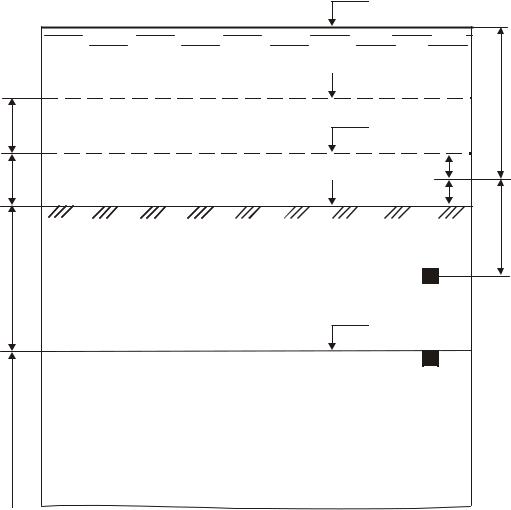 Для глин и суглинков в основаниях фундаментов мостов, расположенных в пределах постоянных водотоков, R следует повышать на величину, равную 14,7dw , кПа, где dw – глубина воды, м, от уровня меженных вод до уровня от которого отсчитывается глубина d (см. рис.2).