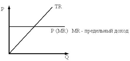 Кривая спроса отдельной фирмы на таком рынке совершенно эластична и совпадает с кривой предельного дохода (рис. 19).