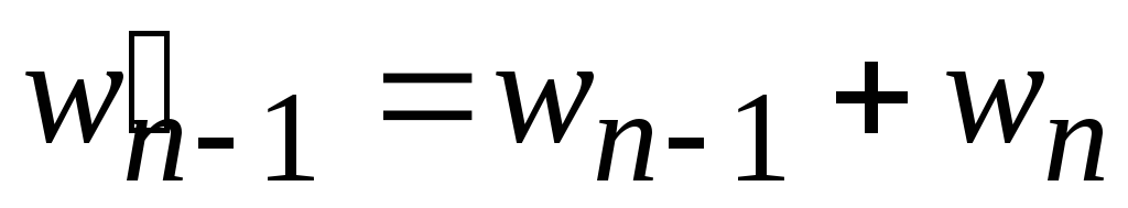 Если n = 2, то завершаем процесс кодирования, приписав сообщению с весом w1 код 1, а сообщению с весом w2 – код 0. Иначе (т. е. при n 2) выполняем следующие действия: