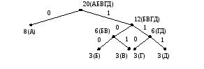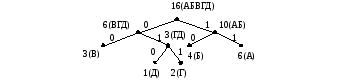Вариант 1. Алгоритм Хаффмана по шагам дает следующее: