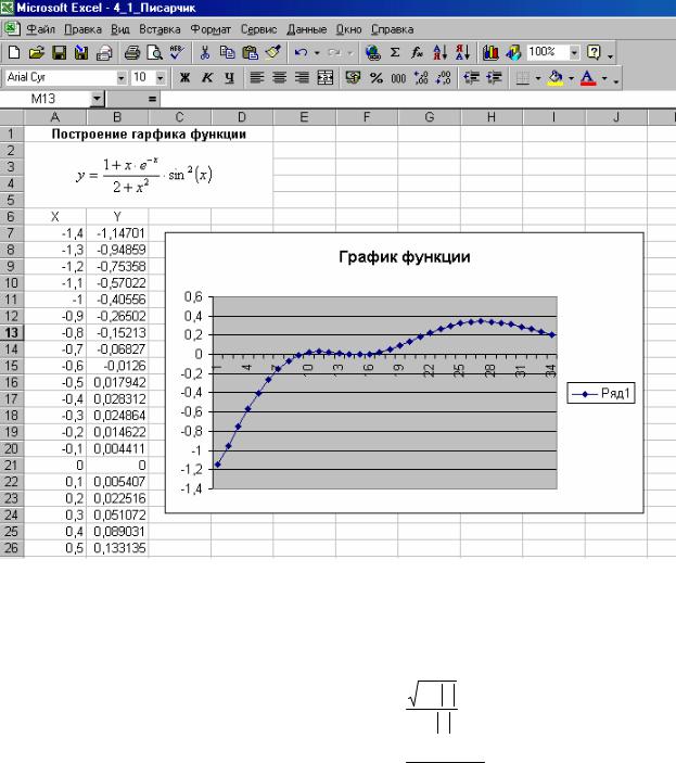 Рис.1.13. Вид листа рабочей книги после построения графика функции