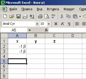 Введем в ячейку B2 иС2 формулы для расчета y и z соответствен-