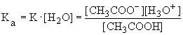 Так как в разбавленных растворах [H2O]=const, то ее можно внести в константу равновесия, которую называют константой кислотности: