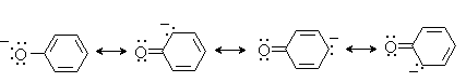 Фенолы являются более сильными кислотами, чем спирты, за счет резонансной стабилизации фенолят-аниона, отрицательный заряд которого делокализован по ароматическому кольцу: