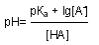 где рКа – показатель кислотности слабой кислоты (справочная, константная величина, например, для уксусной кислоты он равен +4,76), [A-] – концентрация соли [HA] – концентрация слабой кислоты. Используя уравнение Гендерсона-Гассельбаха можно приготовить буфер с заданным значением рН.