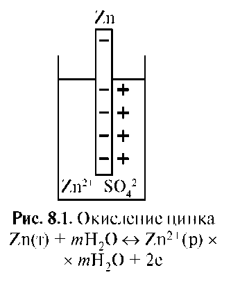 Zn (т) + mH2O ↔ Zn2+ (р-р)×mH2O + 2ē