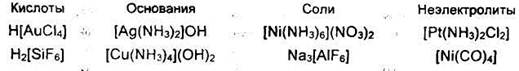 Например, в соединениях [Cu(NH3)4][PtCl6] и [Ni(NH3)6]2[Fe(CN)6] формально функции внешнесферных ионов могут выполнять:
