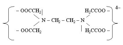 3. К полидентатным лигандам можно отнести 6-дентатный лиганд тетраанион этилендиаминтриуксусной кислоты (ЭДТА):