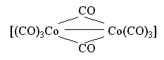 Здесь имеется одинарная связь Co-Co и два бидентатных карбонильных лиганда CO, осуществляющих мостиковое соединение атомов-комплексообразователей.