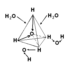 Такой тип электростатического притяжения называют водородной связью. Молекулы воды находятся в непрерывном движении, поэтому водородные связи постоянно быстро разрушаются и вновь образуются. За счёт водородных связей между молекулами воды образуются тетраэдры или кластеры. Молекулы воды, которые не образуют тетраэдры, могут входить и выходить из кластеров (рис. 3.2).