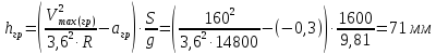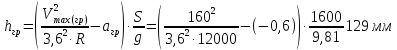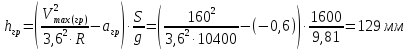 при an(гр) = -0,6 м/с2 рекомендуется принять R = 12000 м и h = 103 мм.