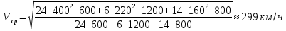 В соответствии с формулой (8) Методики [1], расчёт Vср, ведём для размеров движения и норм массы поездов, принятых в исходных данных.
