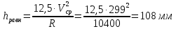 h – возвышение наружного рельса, мм;