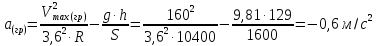 Vmax(гр) = 160 км/ч an(гр) = -0,3 м/с2 (-0,6 м/с2)