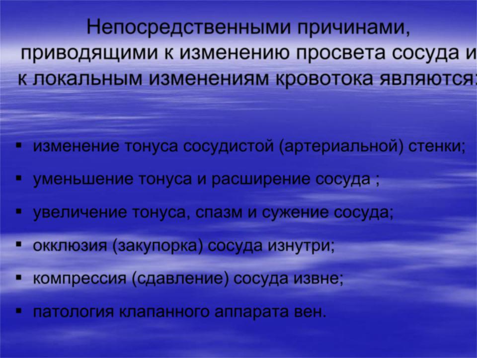 Непосредственными причинами, приводящими к изменению просвета сосуда и