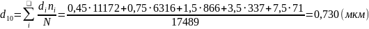 Результаты расчета “средних” диаметров: