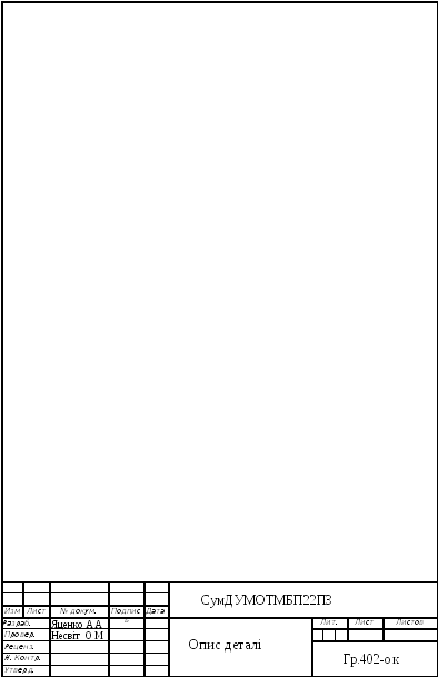 Деталь представлена на заводському кресленні у вигляді розрізу, також зазначені необхідні види конструктивних частин деталі. Кількість перетинів, видів, розмірів достатнє, тому читання креслення можна зробити вільно з мінімальними витратами часу.