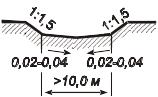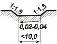 Забанкетная канава располагается сразу за банкетом и имеет глубину 0,3 м, ширину дна не менее 0,3 м и уклон откосов 1:1,5 (приложение 4, 5).