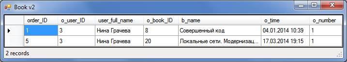 Если в качестве параметра использовать код книги @book_ID, то это же приложение позволит получить сведения обо всех заказах, содержащих конкретную книгу:
