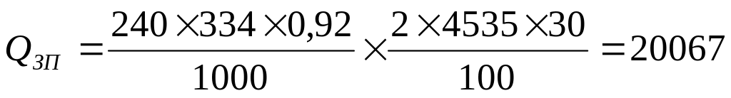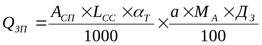 Площадь склада запасных частей и материалов рассчитывается по формуле (2.62):
