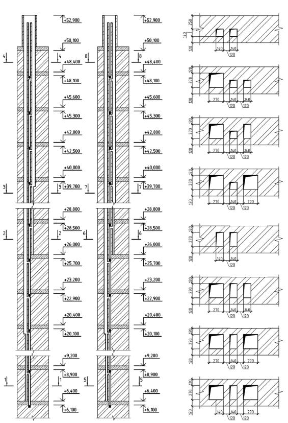 Р и с у н о к С16 - Развертка по вентиляционным блокам с указанием размеров каналов