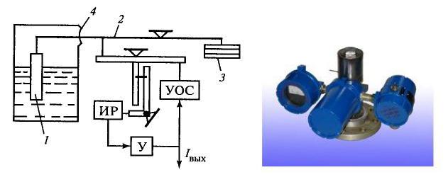 —дифференциальным манометром, который подключается к резервуару на высоте, равной нижнему предельному значению уровня, и к газовому пространству над жидкостью;