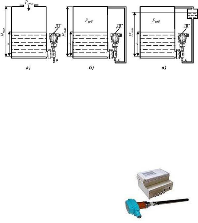 Наиболее распространенные измерительные схемы с использованием гидростатического датчика давления представлены на рисун-