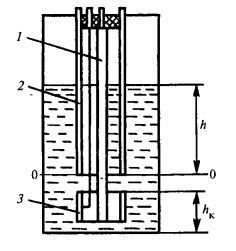 Взаимное расположение электродов зафиксировано проходным изолятором 4. Электроды образуют цилиндрический конденсатор, часть межэлектродного пространства которого высотой Н заполнена контролируемой жидкостью, оставшаяся часть высотой Н – h — ее парами.
