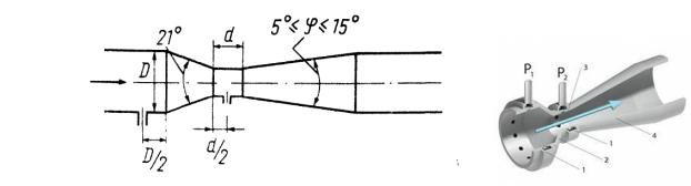 назван в честь итальянского физика Джовани Вентури (1746–1822). Интенсивность всасывания зависит от величины перепада давления в трубке и диаметра самой трубки. Она применяется для труб диаметром 0,1…0,8 м при условии: 0,2 ≤ m ≤ 0,5.