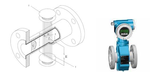 где B — индукция магнитного поля, создаваемого электромагнитной системой; v — средняя скорость потока жидкости; D — расстояние между электродами. Обычно B и D являются постоянными величинами, поэтому ЭДС Е зависит только от средней скорости потока жидкости, а значит и объемного расхода жидкости.