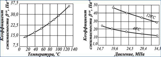 Нефти, не содержащие растворенного газа, обладают сравнительно низким коэффициентом сжимаемости (βн ≈ 0,4 – 0,7 ГПа–1), а легкие нефти со значительным содержанием растворенного газа — повышенным коэффициентом сжимаемости (до 14 ГПа–1, приставка Г