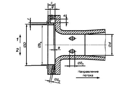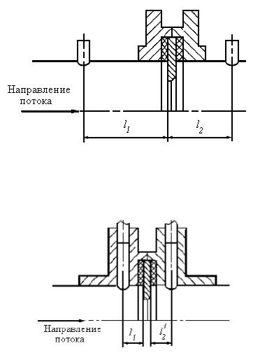 Для диафрагм с фланцевым способом отбора давления расположение отверстий приведено на рисунке 6.39. Расстояние l1 измеряют