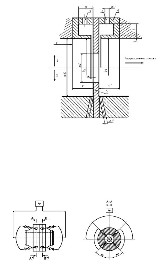 Отверстия могут представлять собой либо отдельные отверстия, либо кольцевые щели. Отдельные отверстия для отбора давления могут быть выполнены как в трубопроводе, так и в его фланцах. Кольцевые щели выполняют в корпусе камеры усреднения или во фланцах трубопровода, как приведено на рисунке 6.41.