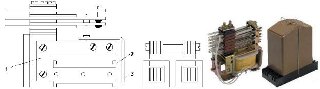 Рис. 7.5 — Двухфазное реле переменного тока: 1 — магнитопровод; 2 — катушка; 3 — якорь