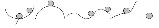 Пример 2 — рисунок 1.29, б. Здесь шар не вернется в свое состояние равновесия в точку Ао — случай неустойчивого положения шара на плоскости.