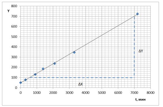 Построим график зависимости У от времени t в мин (рис. 10.1).