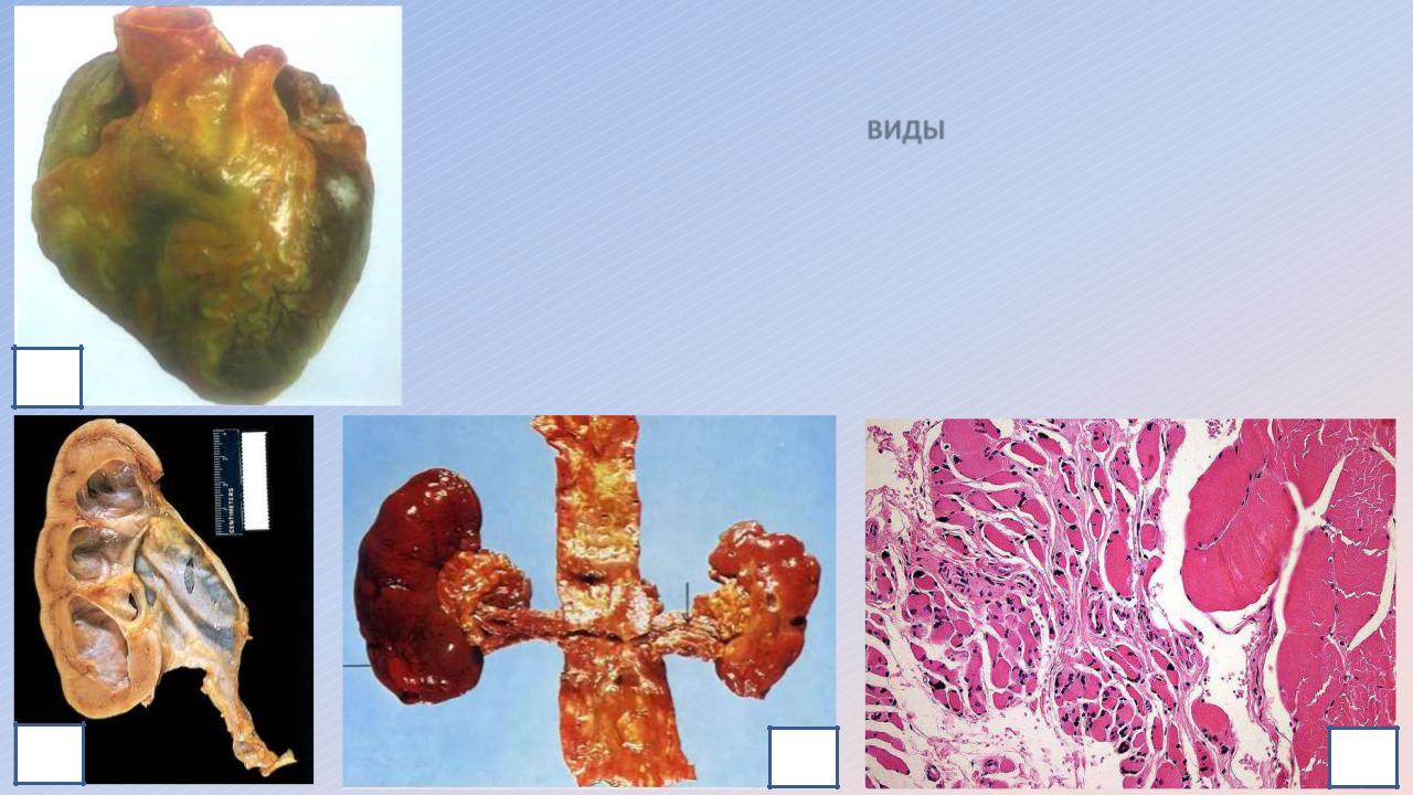 Местная - от давления (гидронефроз-2), от недостатка кровообращения (сморщивание почки при стенозирующем атеросклерозе артерий - 3), от бездействия, от воздействия внешних факторов, нейротрофическая (скелетной мышечной ткани при полиомиелите - 4).