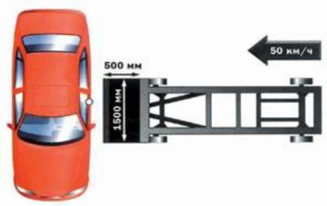 - Прав ла ЕЭК ООН N 95 (пересмотр 2) "Единообразные предписания, касающ еся оф ц ального утверждения транспортных средств в отношении защ ты вод теля и пассажиров в случае бокового столкновения"; - Прав ла ЕЭК ООН N 94 (пересмотр 3) "Единообразные предписания, касающ еся оф ц ального утверждения транспортных средств в отношении защ ты вод теля и пассажиров в случае лобового столкновения". Процесс бокового соударения автомобиля с препятствием на скорости 50 км/ч о деформируемый арьер снимают скоростными кинокамера-